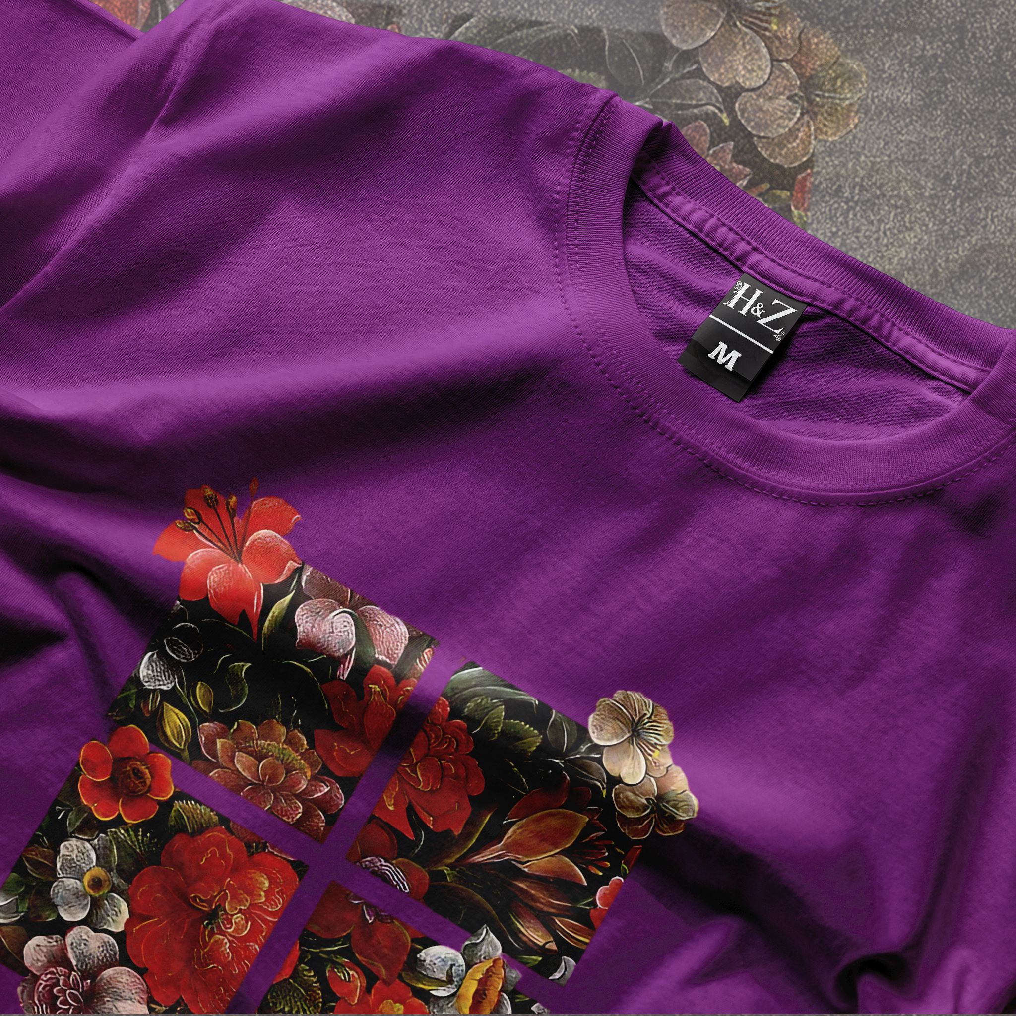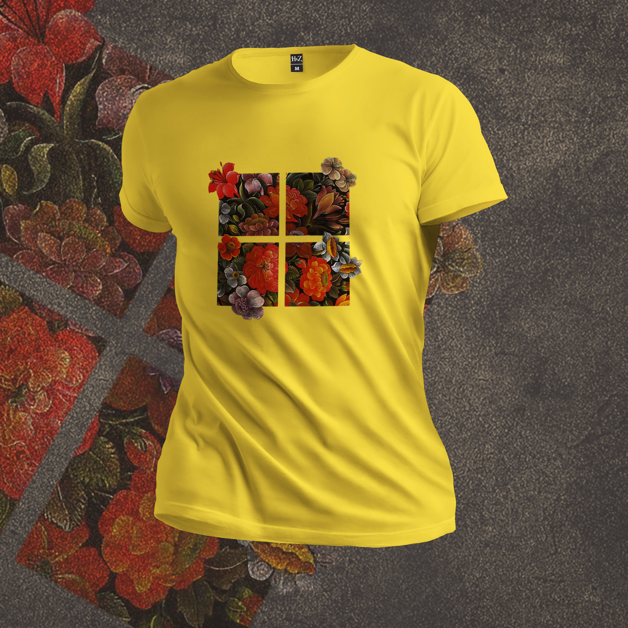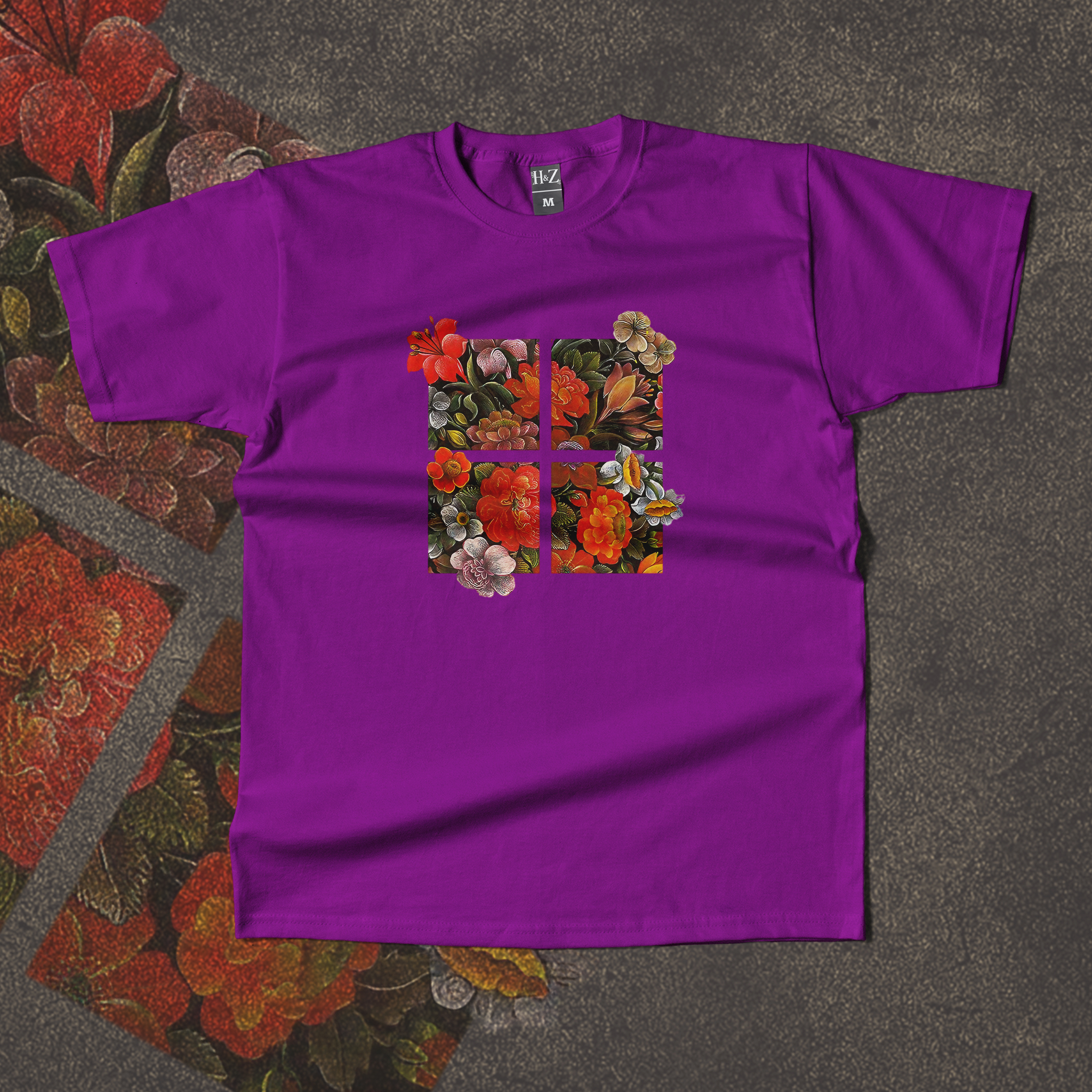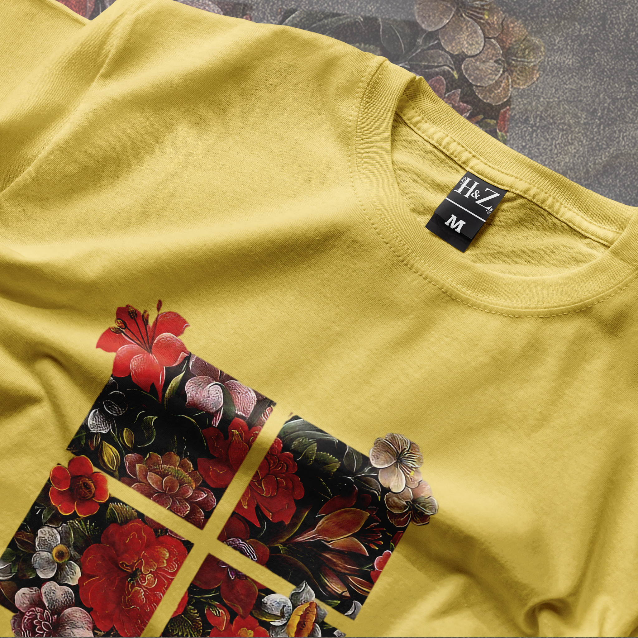 Flower Box Unisex Crew Neck T-Shirt | Four-Panel Floral Art Tee | Premium Cotton Blend | Minimal Aesthetic Streetwear Pakistan
