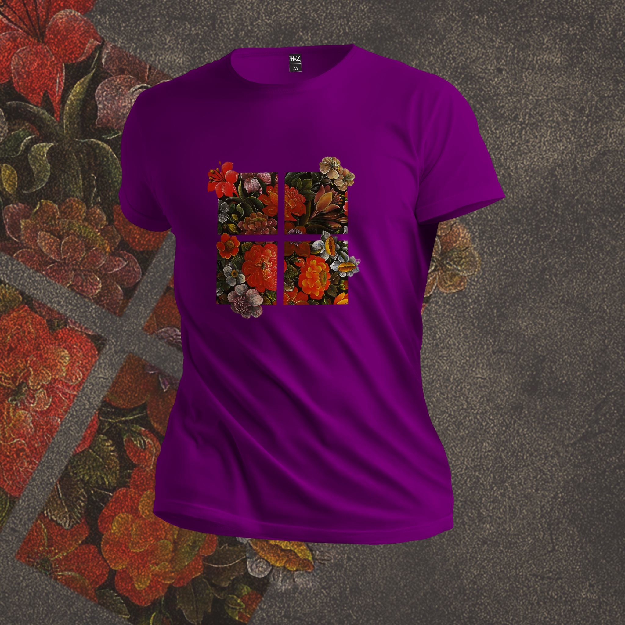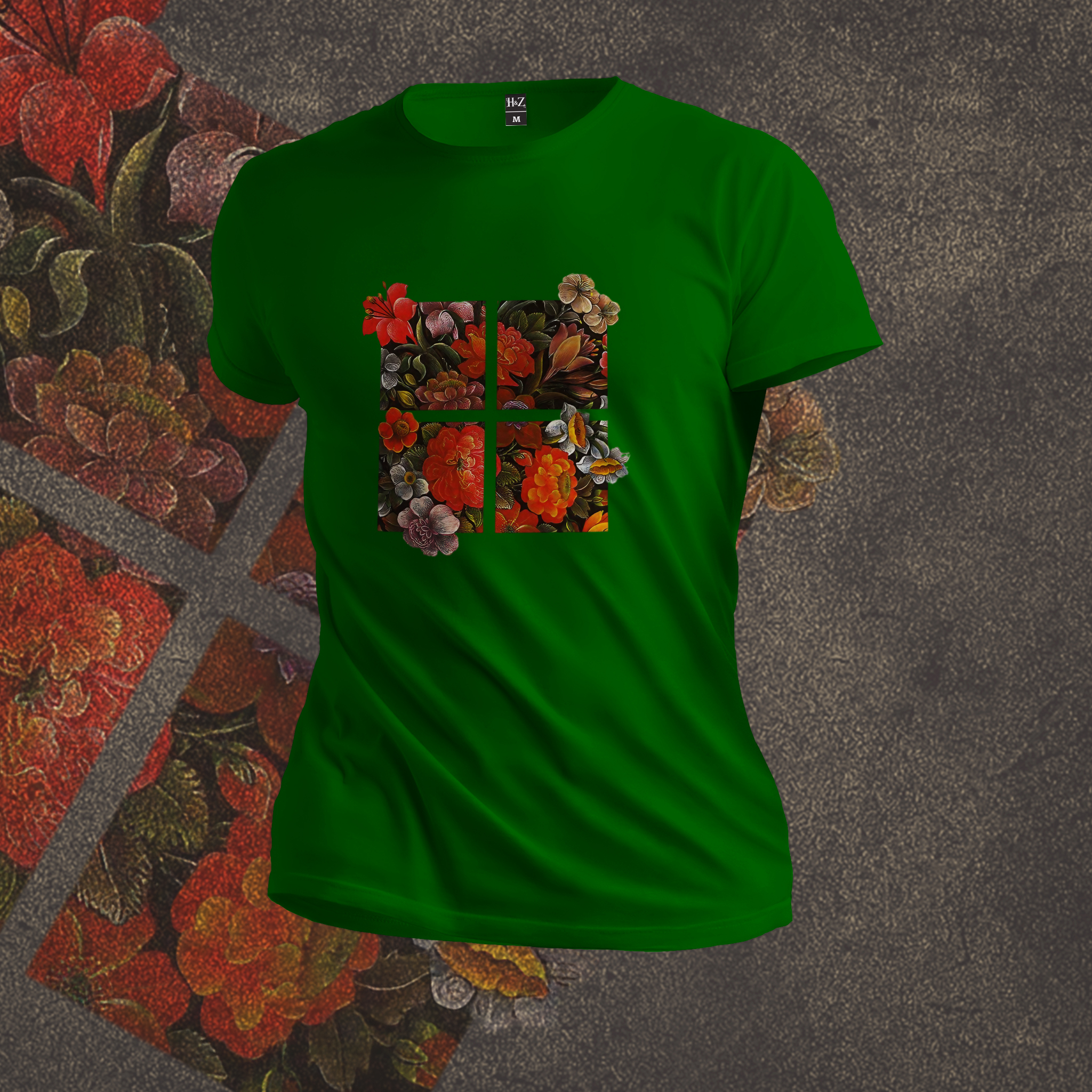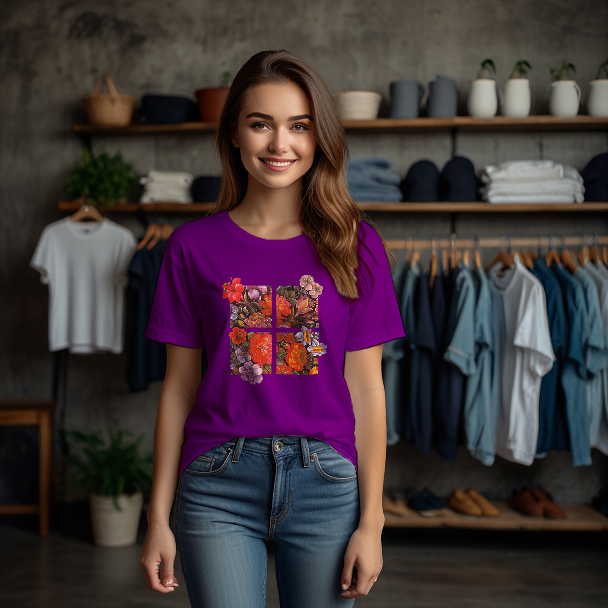 Flower Box Unisex Crew Neck T-Shirt | Four-Panel Floral Art Tee | Premium Cotton Blend | Minimal Aesthetic Streetwear Pakistan
