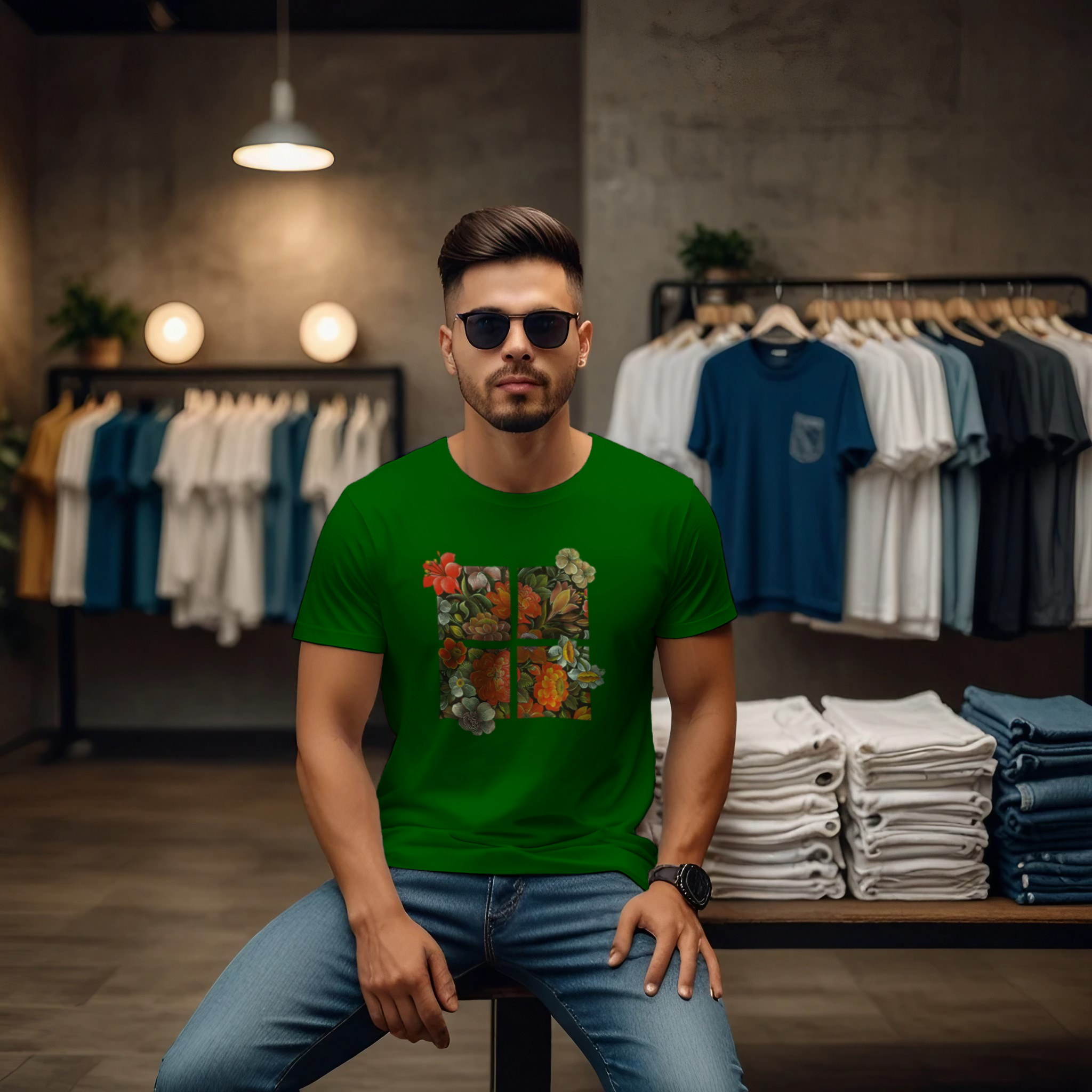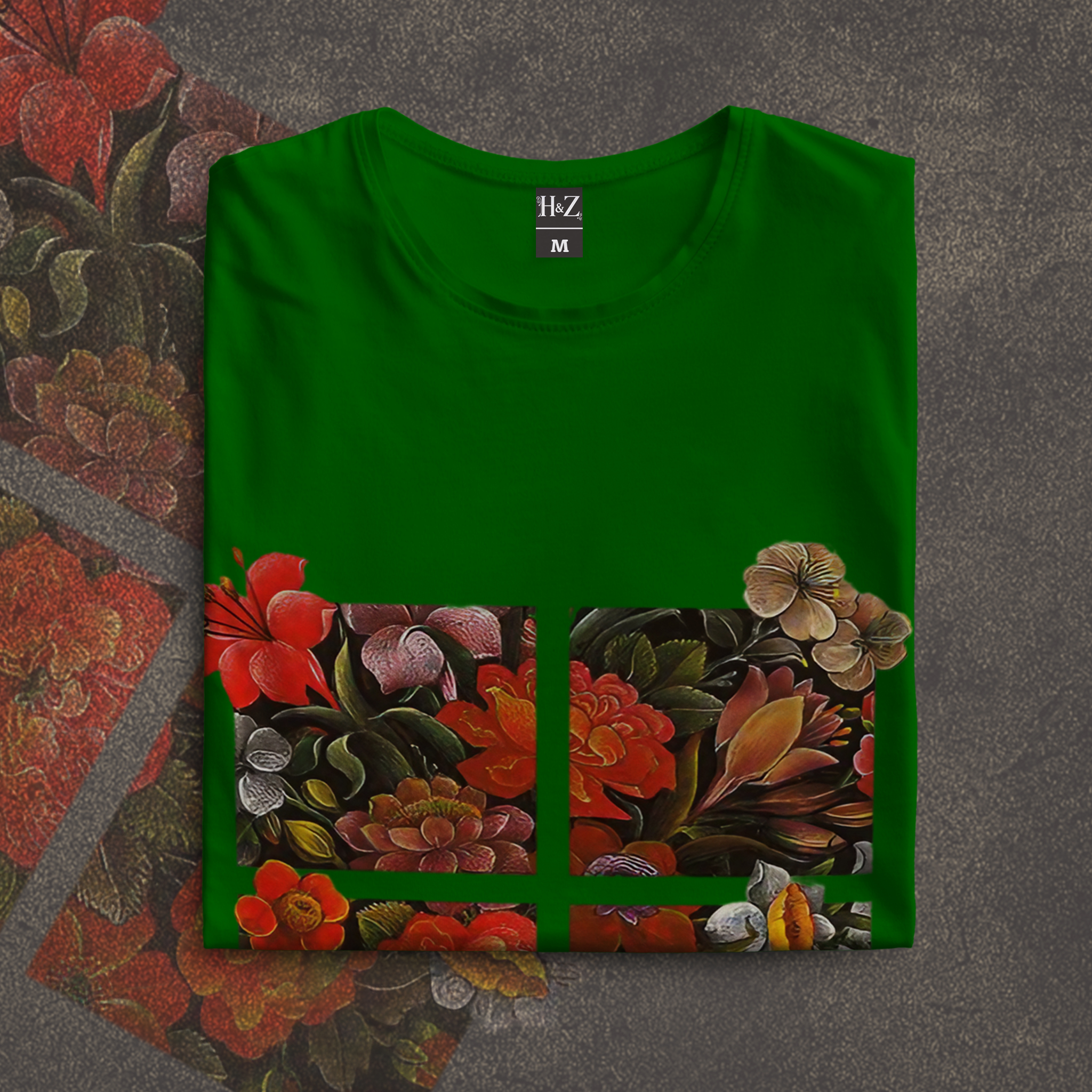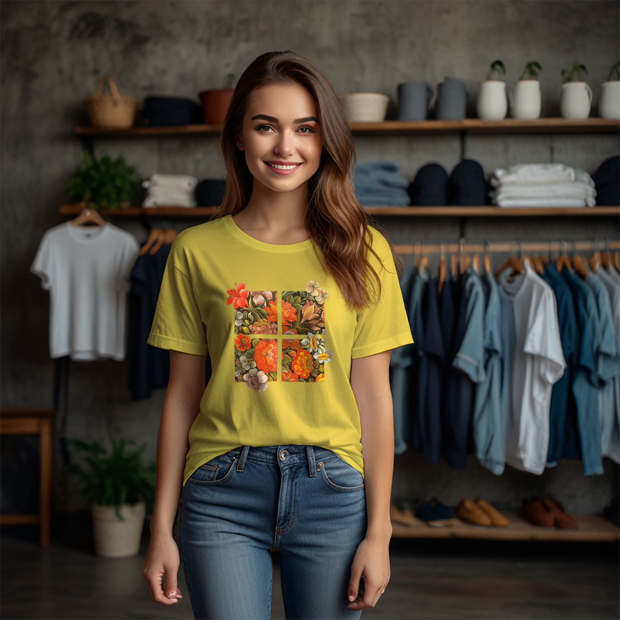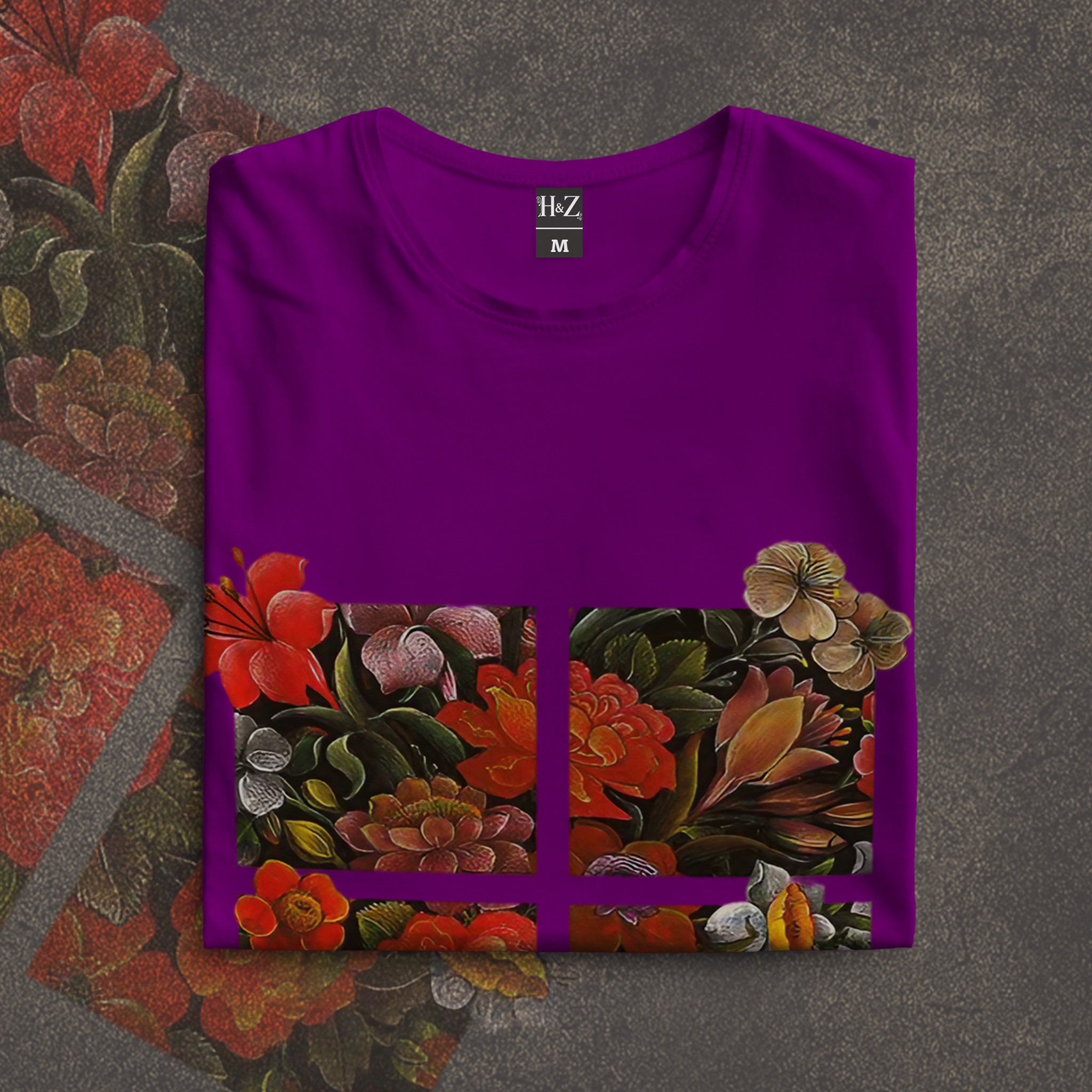 Flower Box Unisex Crew Neck T-Shirt | Four-Panel Floral Art Tee | Premium Cotton Blend | Minimal Aesthetic Streetwear Pakistan