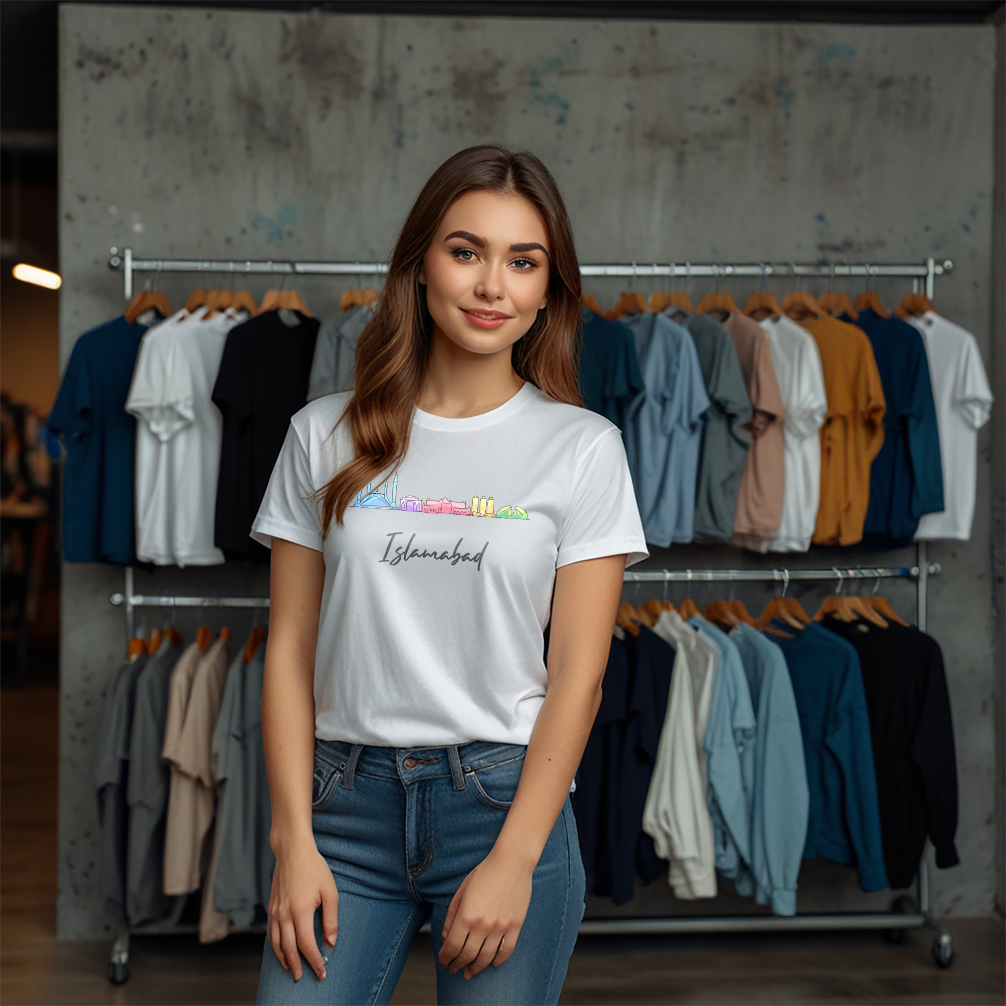 Embrace the calm and charm of the capital with our “Islamabad City Monument Art” Unisex Crew Neck T-Shirt a perfect blend of modern design, comfort, and patriotic style. Crafted for those who love Islamabad’s peaceful vibe and scenic beauty. And Made from premium cotton and polyester blend, this tee ensures softness, breathability, and long-lasting wear. The digital print artwork captures Islamabad’s iconic monuments and skyline, delivering a vibrant, durable design that never fades.